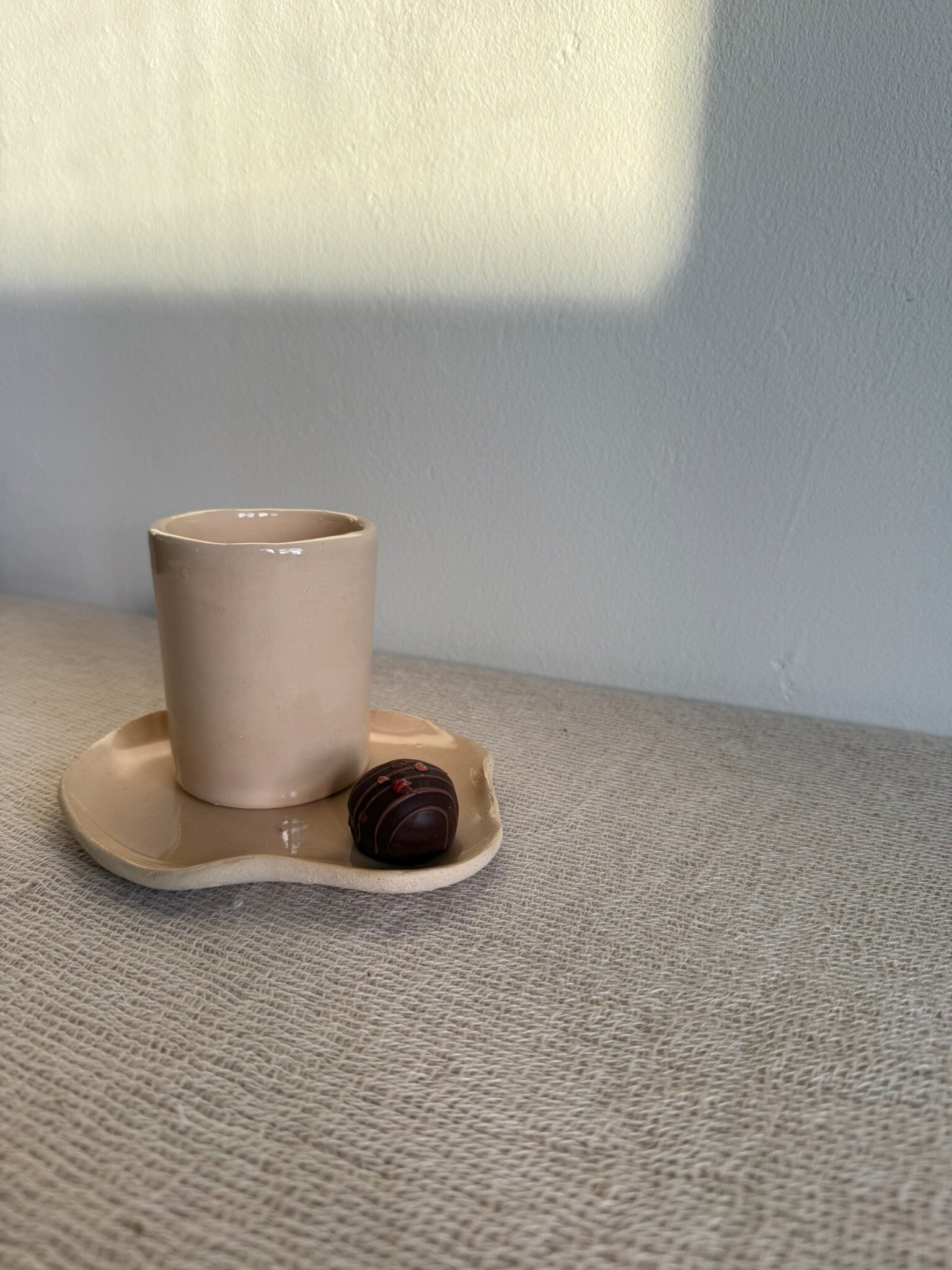 This hand-formed dish is a minimalist statement in itself. The focus lies entirely on its organic silhouette and characteristically contoured rim. Finished in a high-quality, solid cream glaze, it offers a serene and timeless aesthetic.