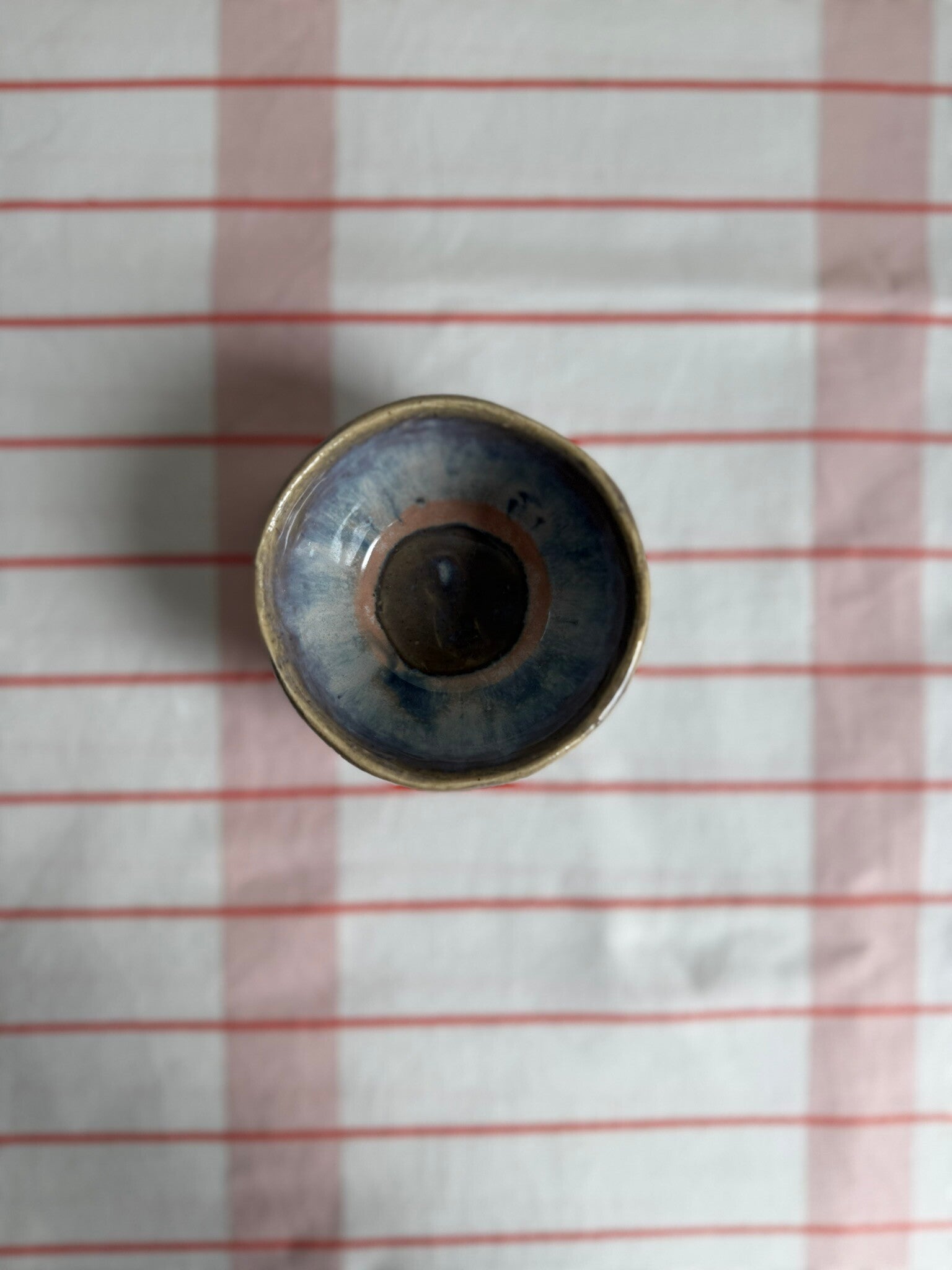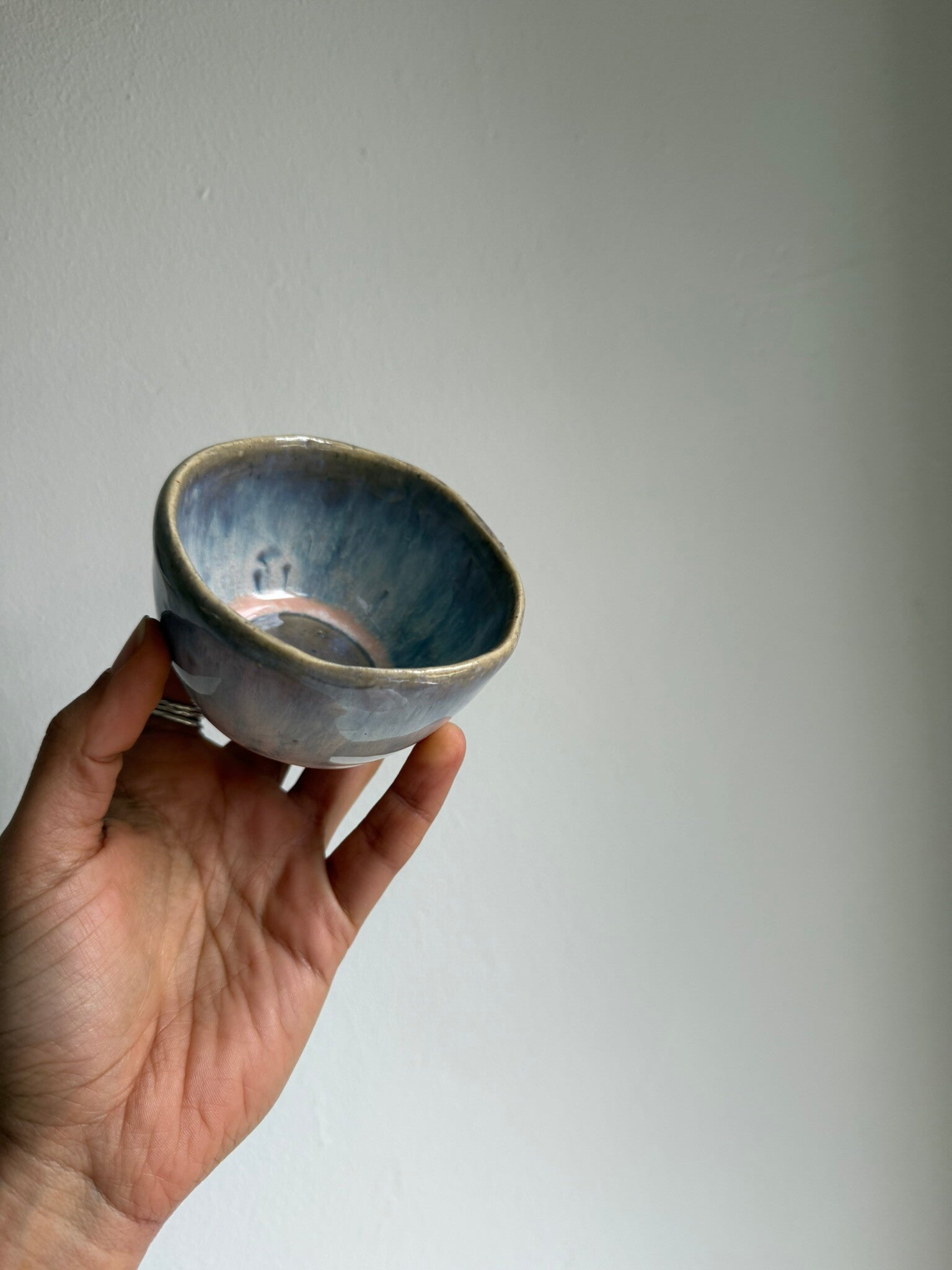 This hand-formed small bowl stands out with its unique glaze, where soft shades of green, gray, and blue blend naturally into one another. Instead of a solid color, you see a dreamy interplay of colors dancing across the surface. This effect gives the bowl a serene yet lively appearance, with a finish that is slightly different on every single piece.